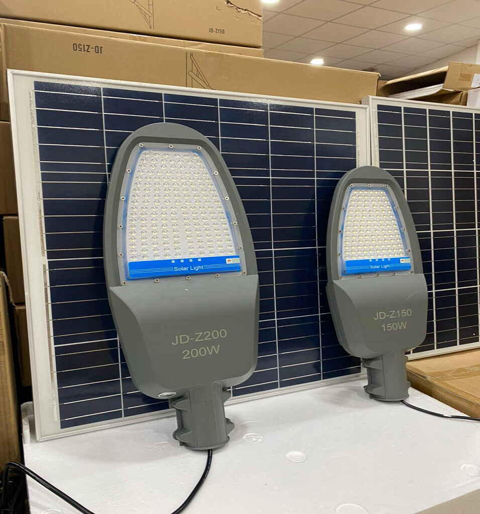 – Đèn đường năng lượng mặt trời 200w mới nhất 2021, đèn năng lượng mặt trời JD Z200 có độ sáng rộng được lắp đặt ở các tuyến đường tỉnh lộ, đường liên xã, liên huyện.